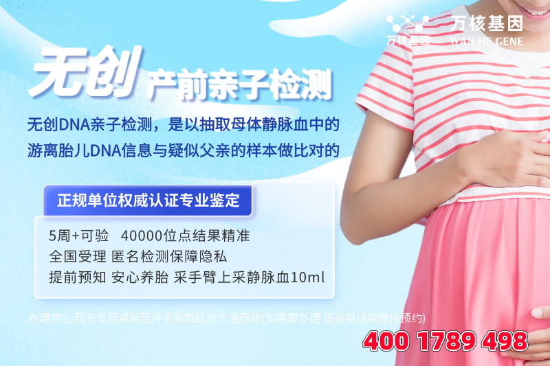 西安无创DNA亲子鉴定具有无创、安全、准确、简便等优点,适用于所有需要亲子鉴定的场合,尤其适用于孕妇和胎儿健康受到保护的情况下进行亲子鉴定,更多详情可在线咨询西安万核医学检测中心。